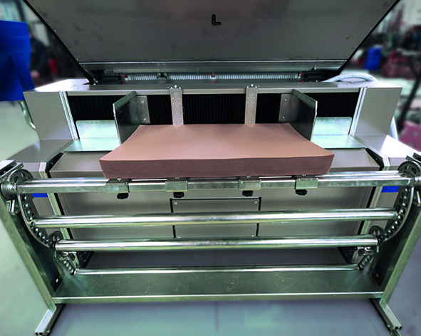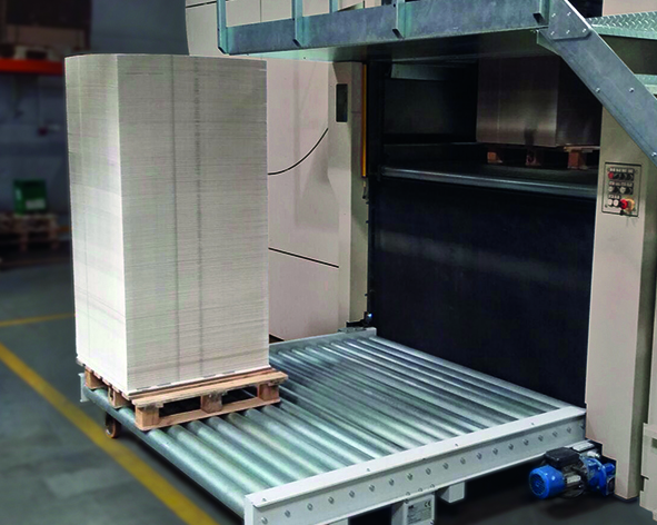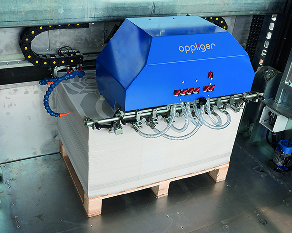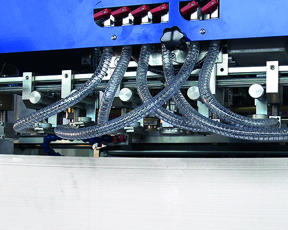 Il mettifoglio del materiale di supporto è composto da cinghie ritmiche aspiranti con una potenza di aspirazione elevata che garantisce un’introduzione sicura e precisa del materiale di supporto.