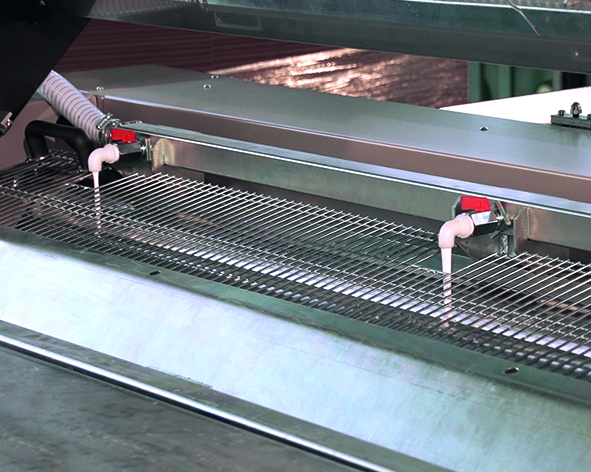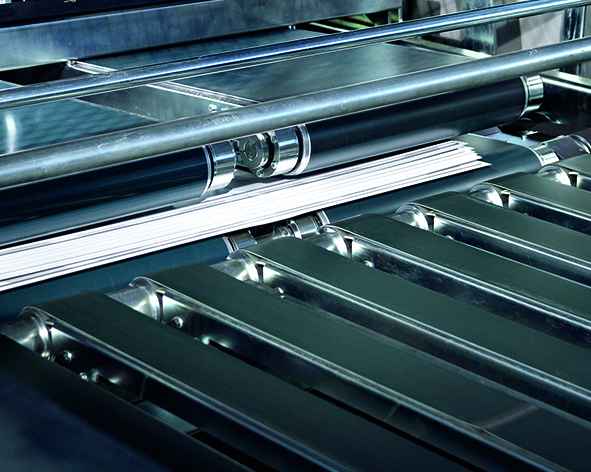 Una coppia di rulli speciali con dei raschietti bilaterali permette una pulizia facilitata del gruppo colla e garantisce una regolazione molto precisa della distribuzione di colla sul foglio di supporto riducendo al massimo il relativo consumo.